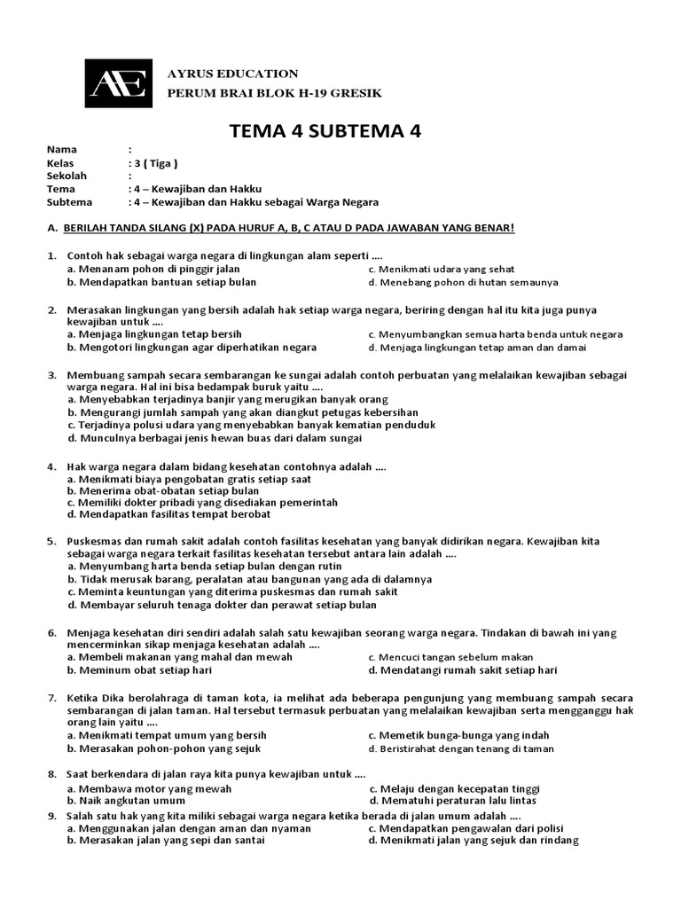 - Memperkaya Kosakata dan Konsep: Tema 4, seperti tema lainnya dalam kurikulum SD, mengandung banyak kosakata dan konsep baru. Latihan soal akan memaksa siswa untuk mengingat dan memahami arti dari istilah-istilah tersebut dalam konteks yang berbeda.